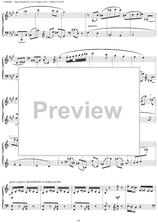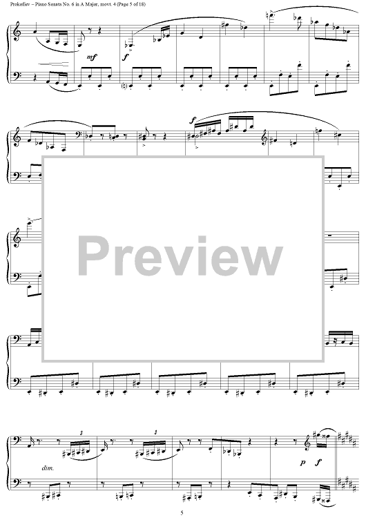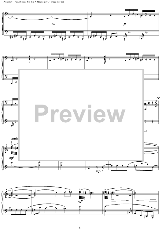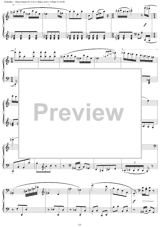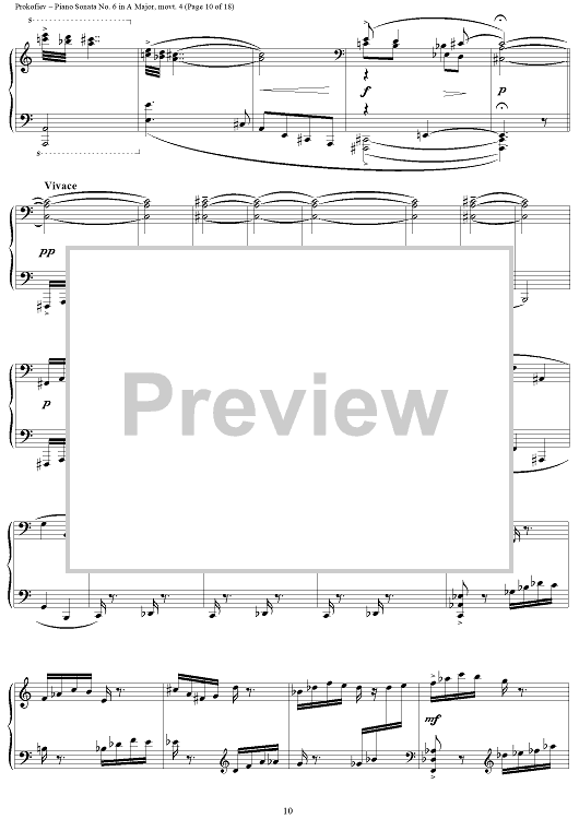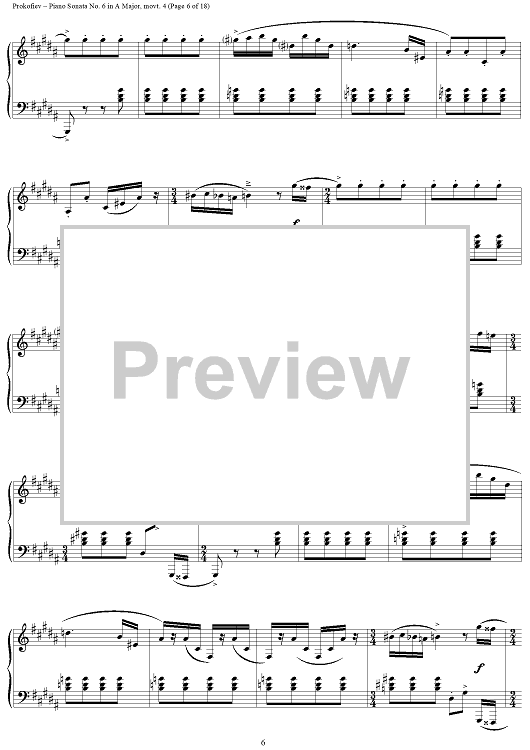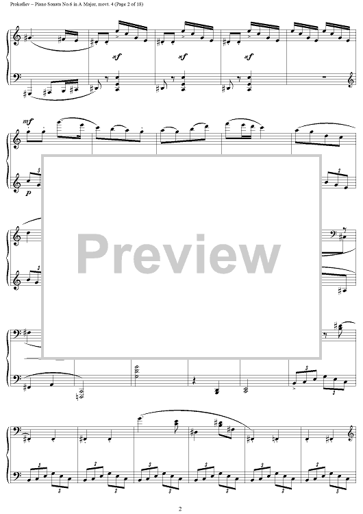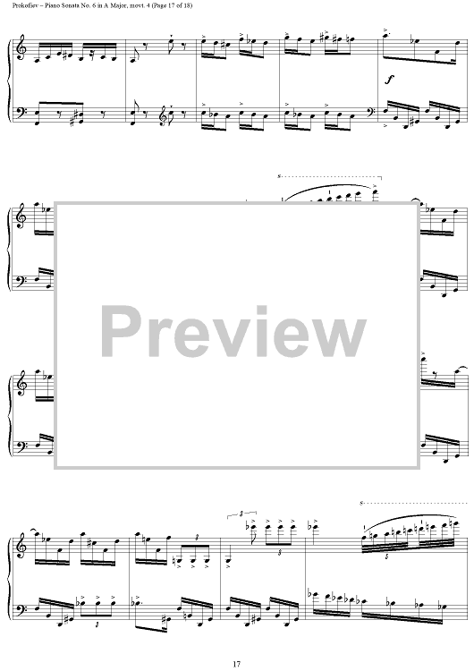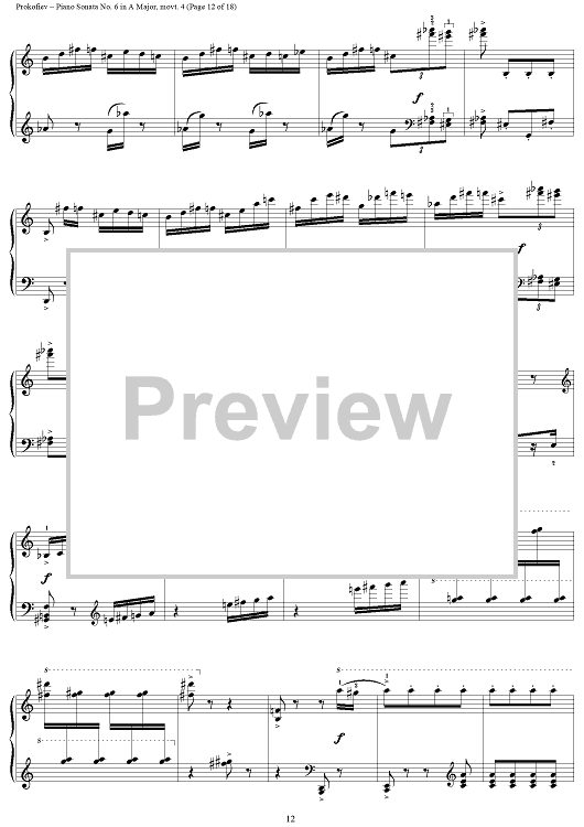 Digital Sheet Music for Sonata No. 6 in A Major, Op. 82, Movement 4, "War Sonata 1" by Sergei Prokofiev scored for Piano Solo; id:254784