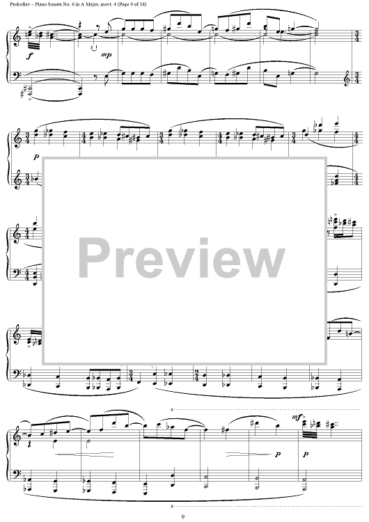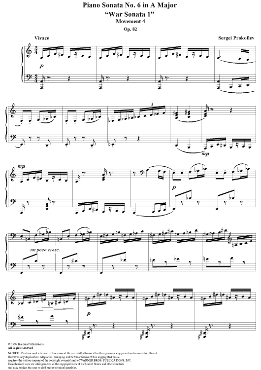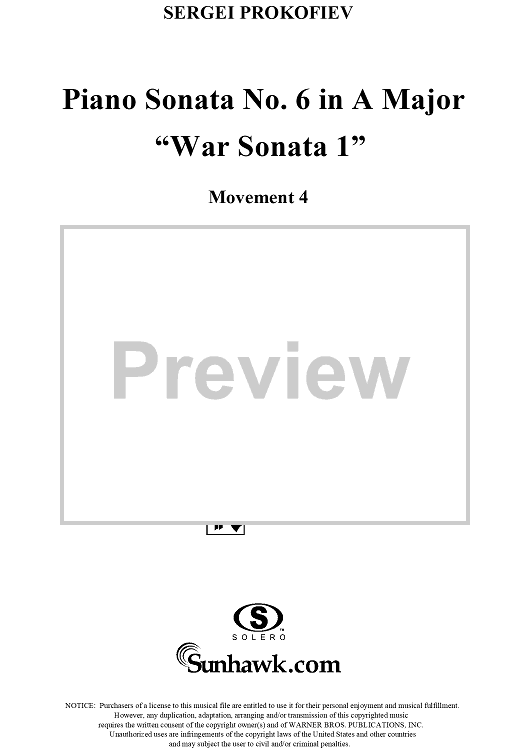 "Sonata No. 6 in A Major, Op. 82, Movement 4, "War Sonata 1"" Sheet Music by Sergei Prokofiev