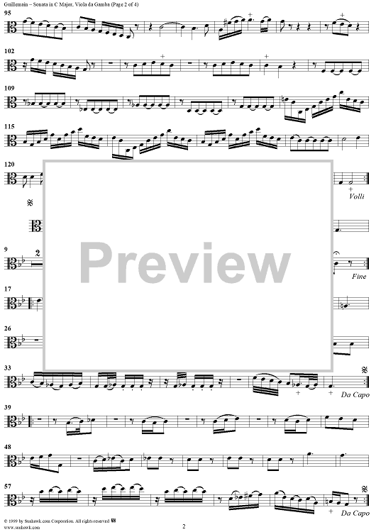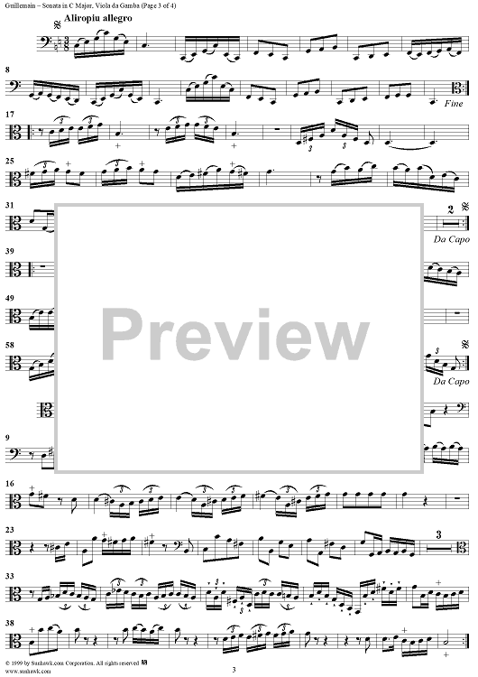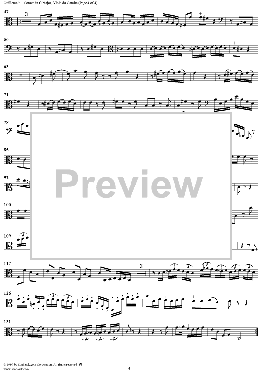 Digital Sheet Music for Sonata No. 6 in C Major - Viola da gamba by Louis-Gabriel Guillemain scored for Flute/Violin/Viola da Gamba/Continuo; id:267425