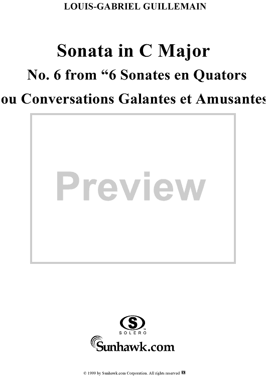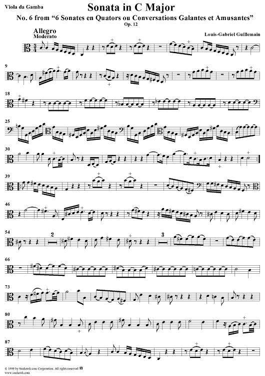 "Sonata No. 6 in C Major - Viola da gamba" Sheet Music by Louis-Gabriel Guillemain