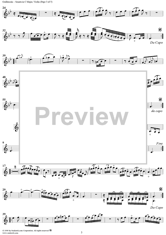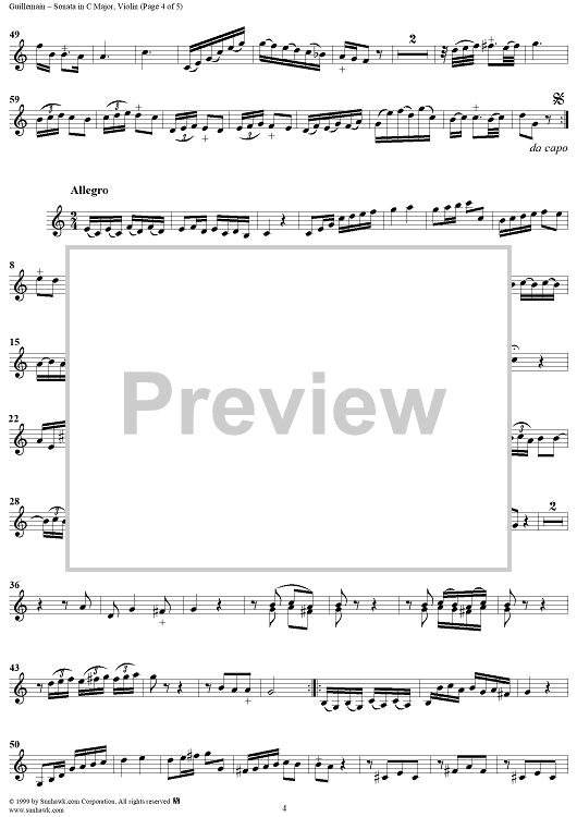 Digital Sheet Music for Sonata No. 6 in C Major - Violin by Louis-Gabriel Guillemain scored for Flute/Violin/Viola da Gamba/Continuo; id:267424