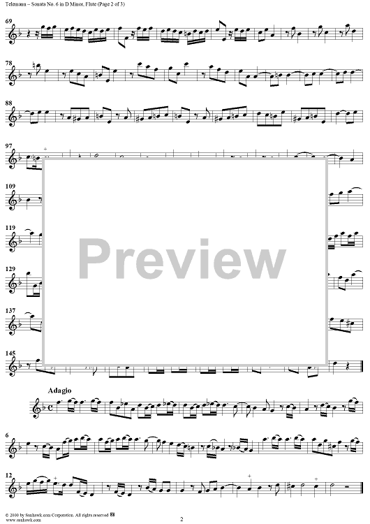 "Sonata No. 6 in D Minor - Flute" Sheet Music by Georg Philipp Telemann