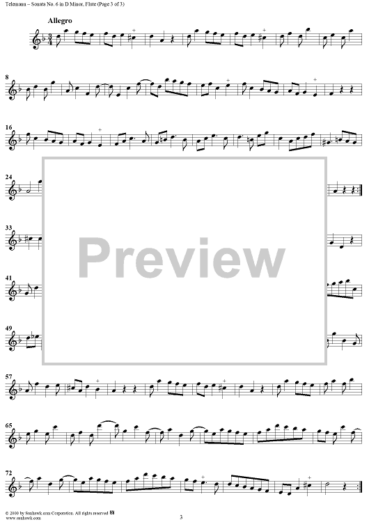 Digital Sheet Music for Sonata No. 6 in D Minor - Flute by Georg Philipp Telemann scored for Flute, String Trio; id:198102