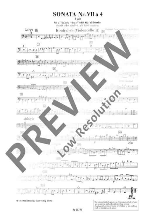 Digital Sheet Music for Sonata No. 7 D minor a 4 - Double Bass by Johann Rosenmueller scored for Strings; id:495292