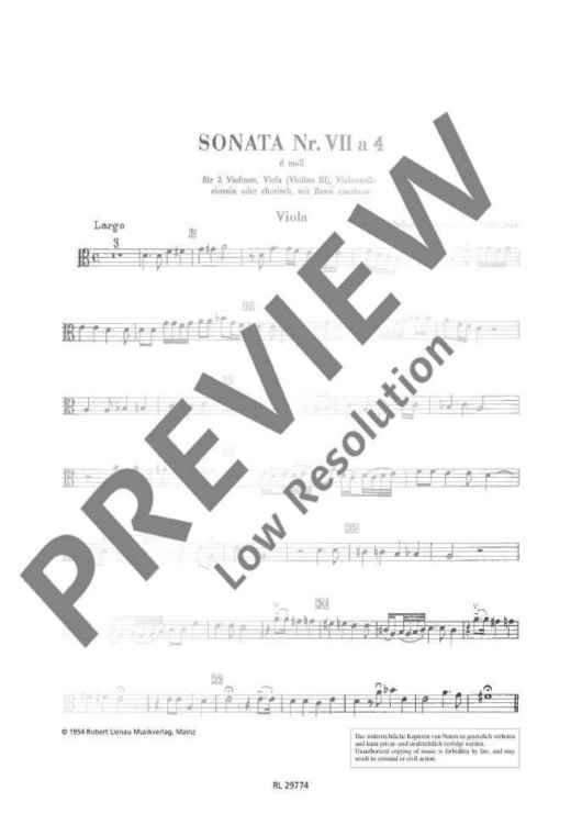 Digital Sheet Music for Sonata No. 7 D minor a 4 - Viola by Johann Rosenmueller scored for Strings; id:495269