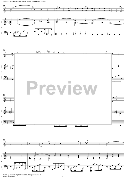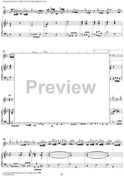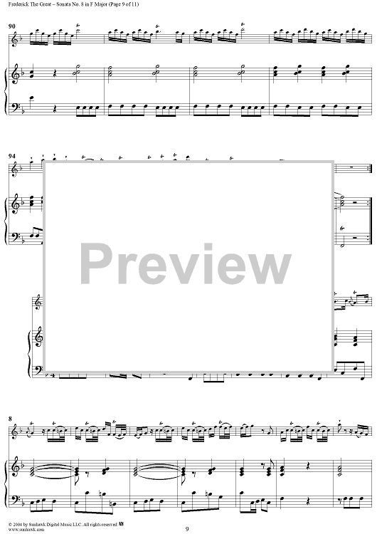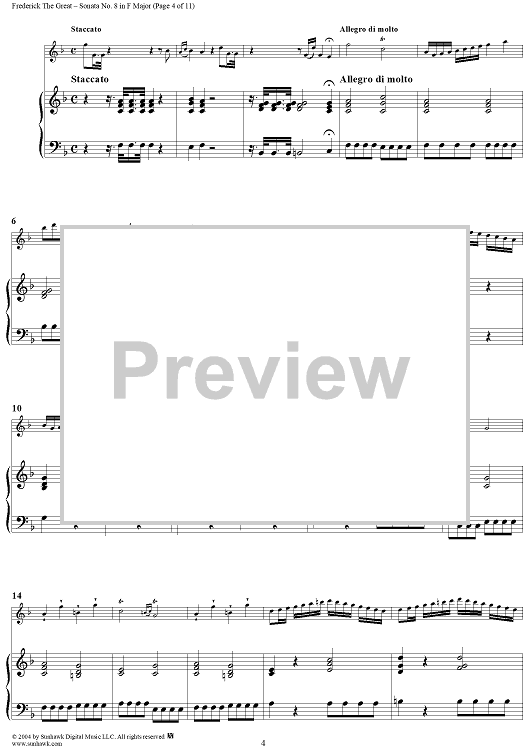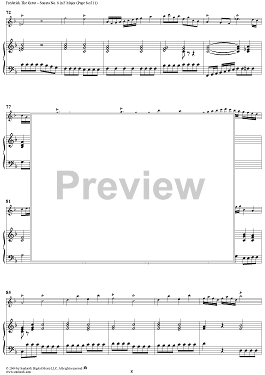 Digital Sheet Music for Sonata No. 8 in F Major - Piano by Frederick II, King of Prussia scored for Flute/Piano; id:303376