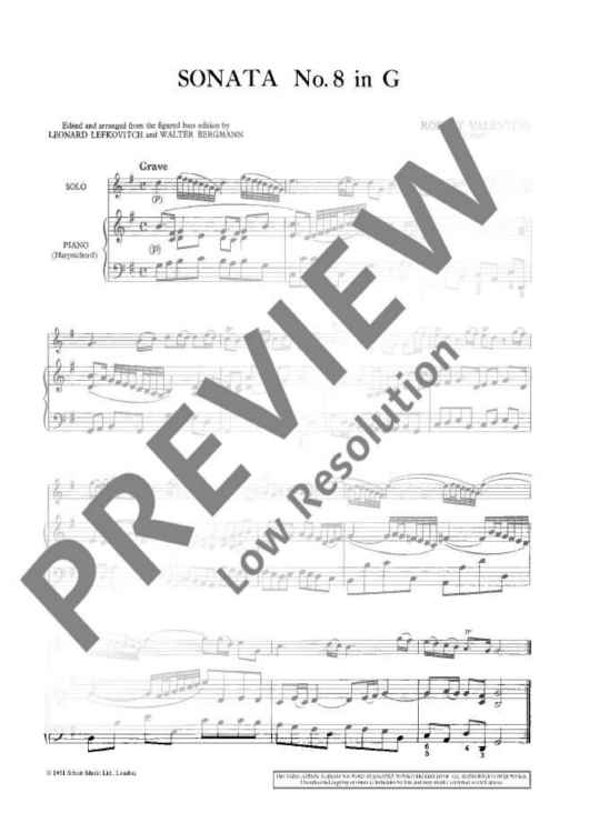 "Sonata No. 8 in G major" Sheet Music by Robert Valentine