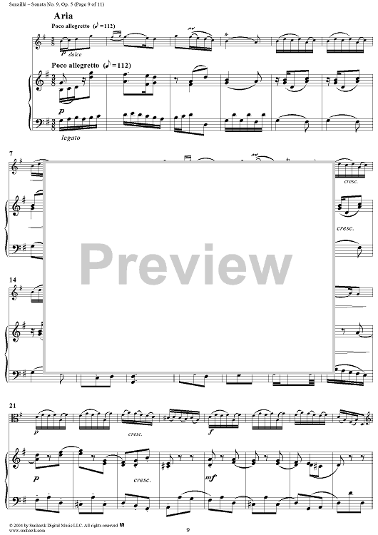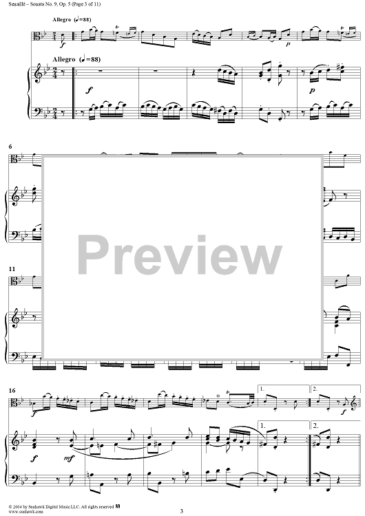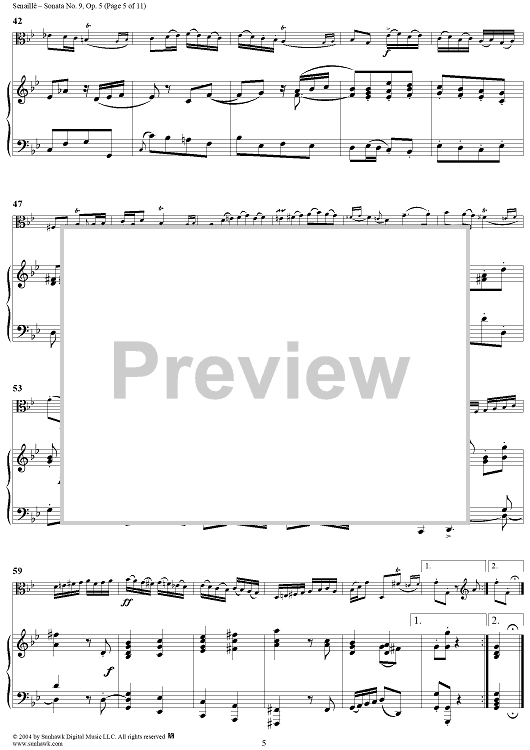 Digital Sheet Music for Sonata No. 9, Op. 5 - Piano Score by Jean-Baptiste Senaillé scored for Viola/Piano; id:303079