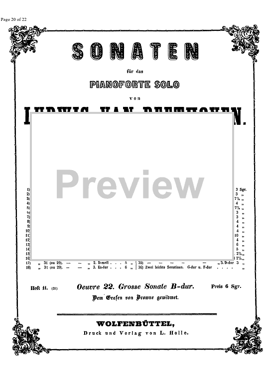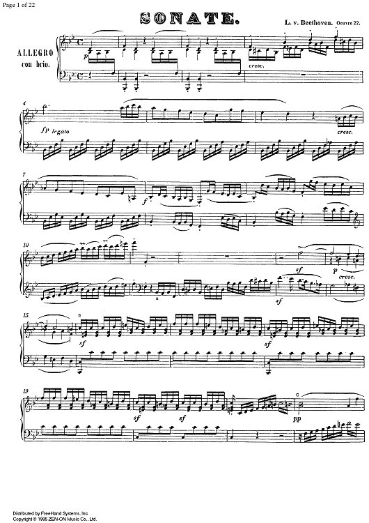Digital Sheet Music for Sonata No.11 Bb Major Op.22 - Piano by , Ludwig van Beethoven scored for Piano Solo; id:332855
