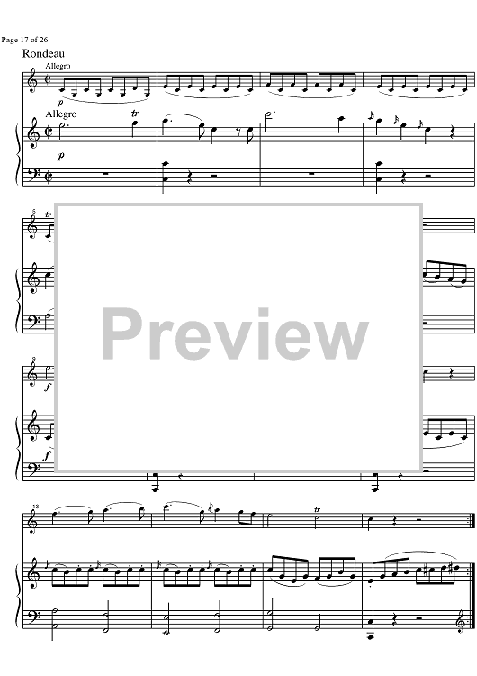 "Sonata No.17 C Major KV296 - Score" Sheet Music by Wolfgang Amadeus Mozart
