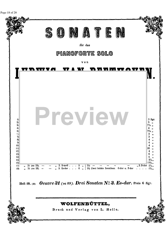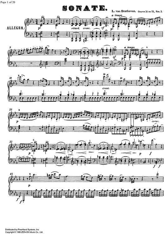 Digital Sheet Music for Sonata No.18 Eb Major Op.31 No. 3 - Piano by , Ludwig van Beethoven scored for Piano Solo; id:332990