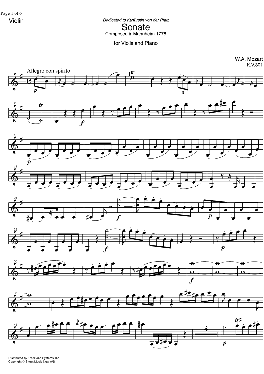 Digital Sheet Music for Sonata No.18 G Major KV301 - Violin by Wolfgang Amadeus Mozart scored for Violin/Piano; id:329543
