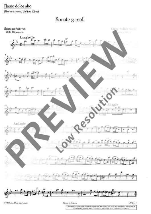 "Sonata No.2 in G minor, from Four Sonatas in G minor" Sheet Music by George Frideric Handel