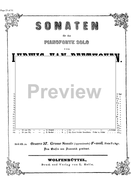 Digital Sheet Music for Sonata No.23 f minor Op.57 Appassionata - Piano by , Ludwig van Beethoven scored for Piano Solo; id:333012