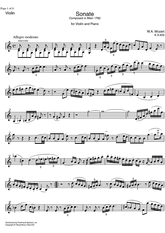 Digital Sheet Music for Sonata No.30 C Major KV403 - Violin by Wolfgang Amadeus Mozart scored for Violin/Piano; id:329183