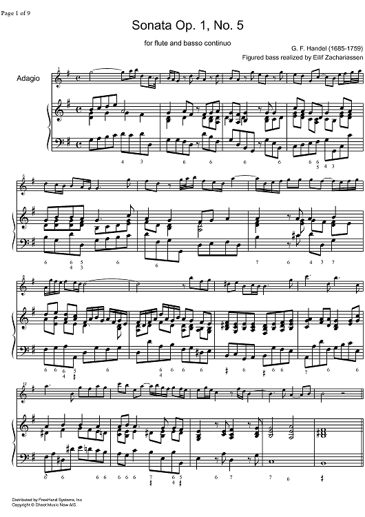 Digital Sheet Music for Sonata Op. 1 No. 5 HWV 363b - Score by George Frideric Handel, Eilif Zachariassen scored for Flute/Continuo; id:324765