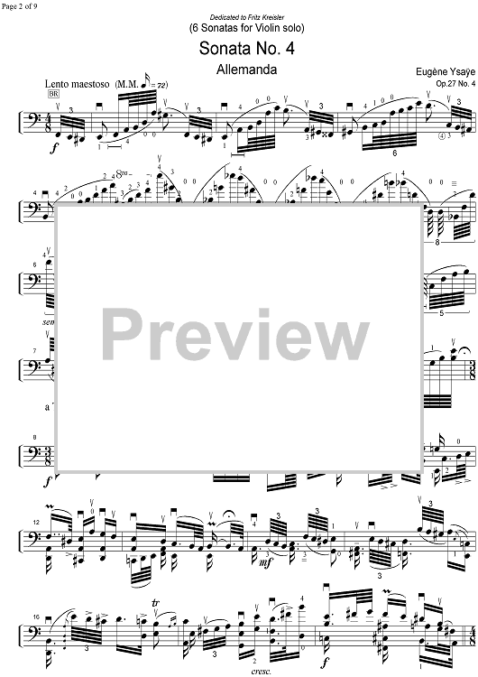 Digital Sheet Music for Sonata Op.27 No. 4 by Eugène Ysaÿe scored for Cello; id:346967