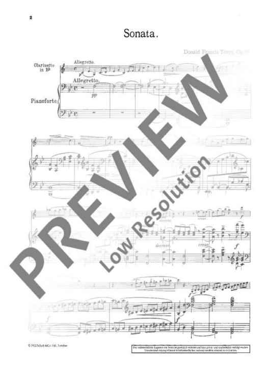 Digital Sheet Music for Sonata by Donald Francis Tovey scored for Clarinet In Bb And Piano; id:474393