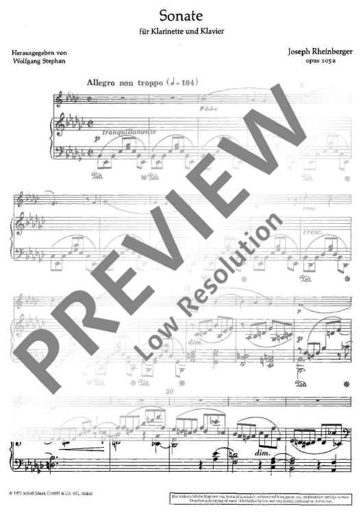 Digital Sheet Music for Sonata by Joseph Gabriel Rheinberger scored for Clarinet And Piano; id:475897