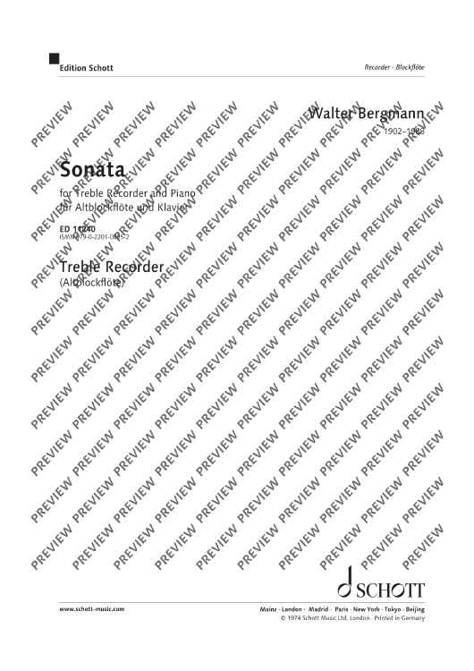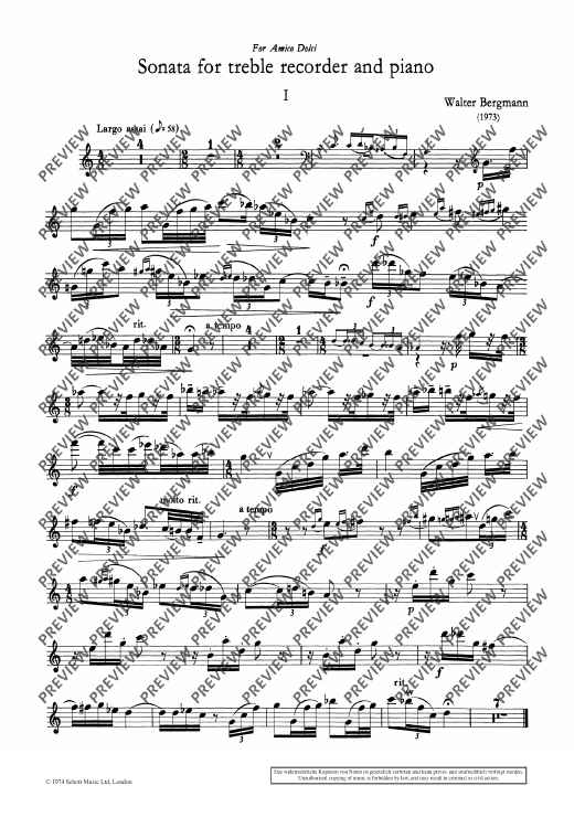 Digital Sheet Music for Sonata by Walter Bergmann scored for Treble Recorder And Piano; id:500232