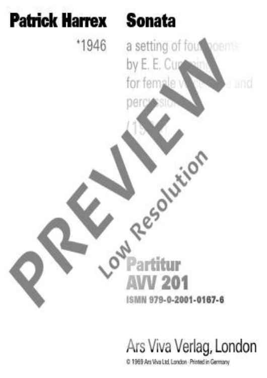 Digital Sheet Music for Sonata - Performing Score by Patrick Harrex scored for Female Voice, Flute And Percussion; id:471249