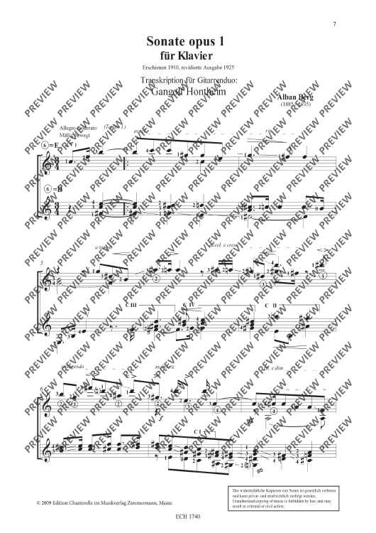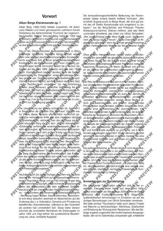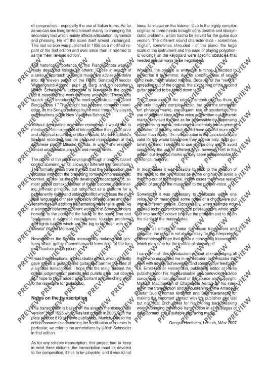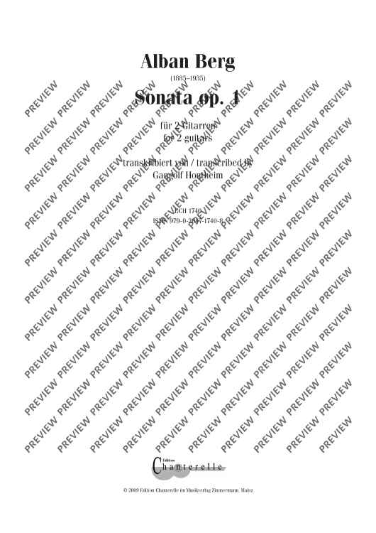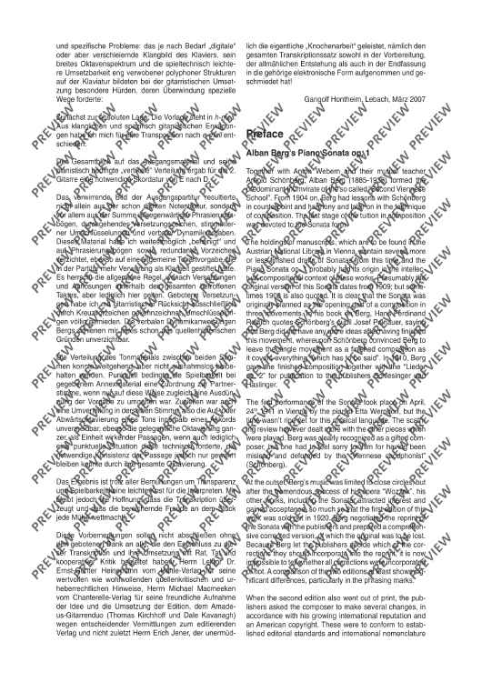 First ever publication of Alban Berg's Piano Sonata op. 1 here transcribed for guitar duo. Prepared from Alban Berg's later revised version of this work by Gangolf Hontheim.