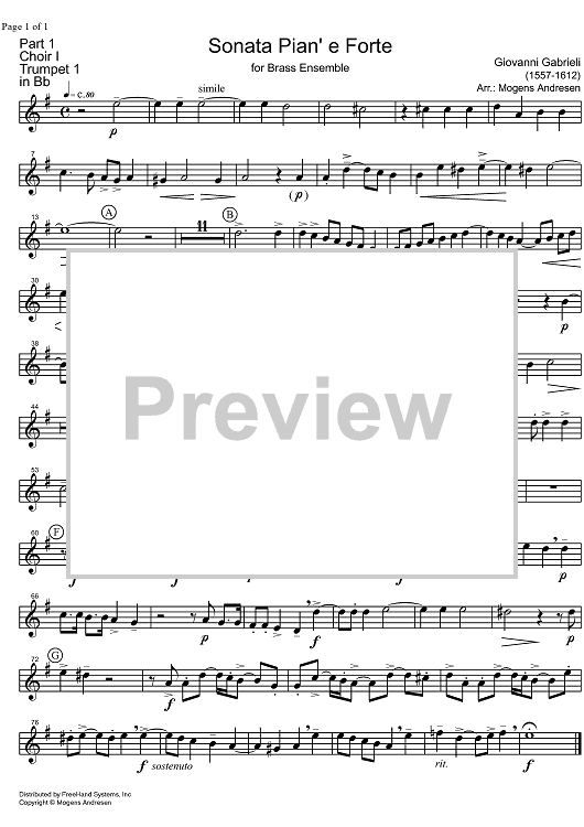 "Sonata Pian' e Forte - B-flat Trumpet 1" Sheet Music by Giovanni Gabrieli
