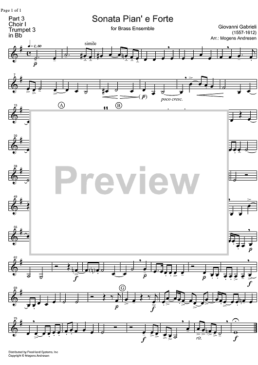"Sonata Pian' e Forte - B-flat Trumpet 3" Sheet Music by Giovanni Gabrieli