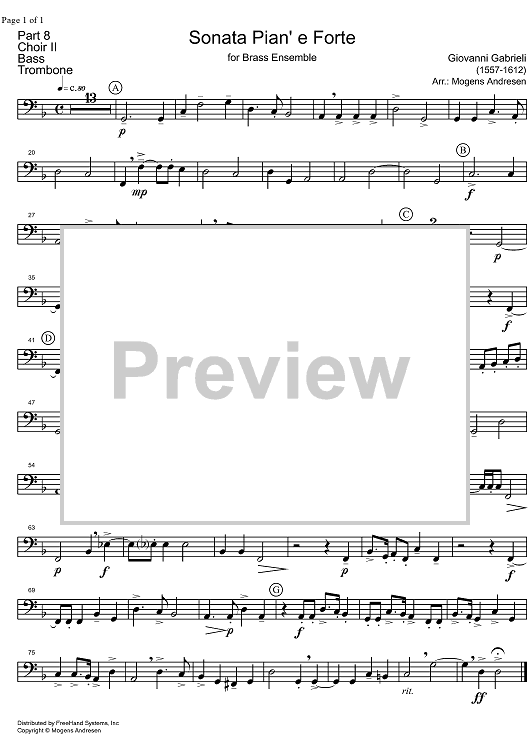 Digital Sheet Music for Sonata Pian' e Forte - Bass Trombone by Giovanni Gabrieli, Mogens Andresen scored for Brass Ensemble; id:326891