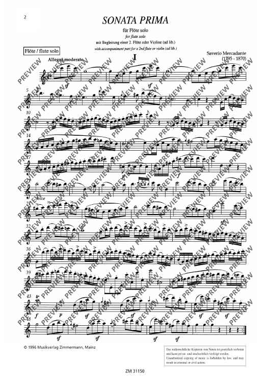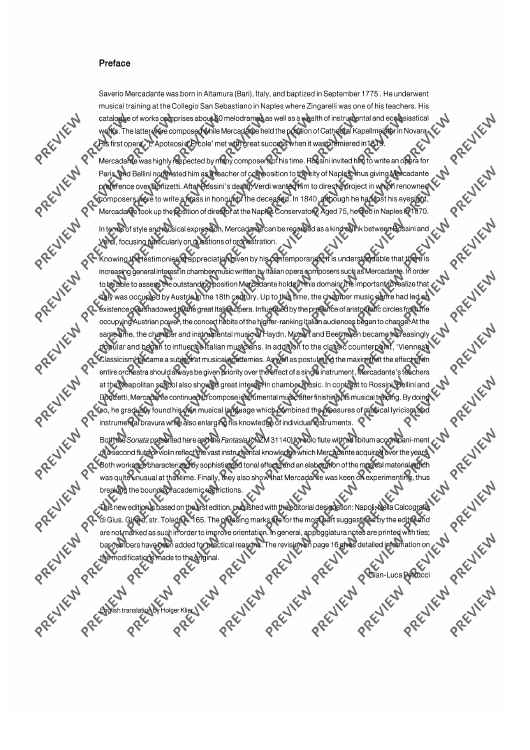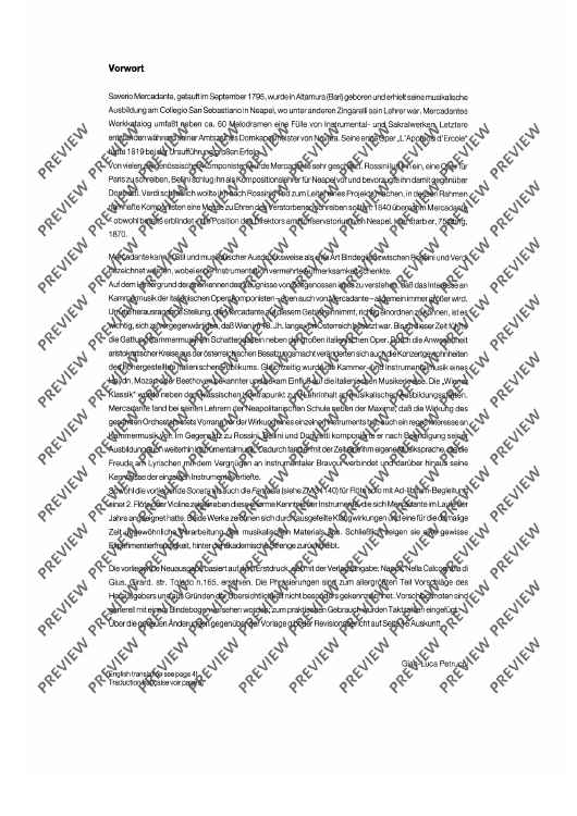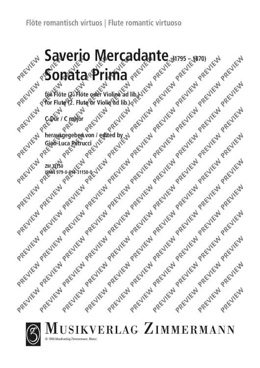 Mercadante was highly respected by many composers of his time. As well as postulating the maxim that the effect of an entire orchestra should always be given priority over the effect of a single instrument, Mercadante's teachers at the Neapolitan school also showed great interest in chamber music. In contrast to Rossini, Bellini and Donizetti, Mercadante continued to compose instrumental music after finishing his musical training. By doing so, he gradually found his own musical language which combined the pleasures of musical lyricism and instrumental bravura while also enlarging his knowledge of individual instruments. Both the sonata presented here and the Fantasia (cf.ZZM 31140) for solo flute with ad libitum accompaniment of a second flute or violin reflect the vast instrumental knowledge which Mercadante acquired over the years.