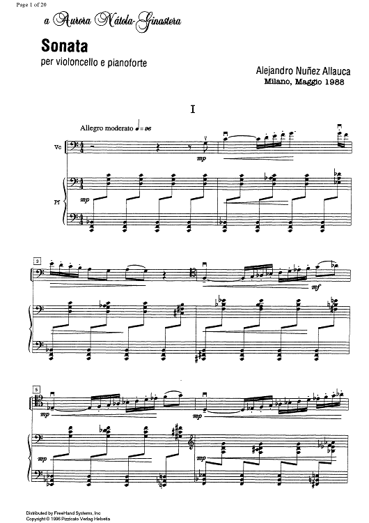 Digital Sheet Music for Sonata - Score by , Alejandro Núñez Allauca scored for Cello/Piano; id:348067