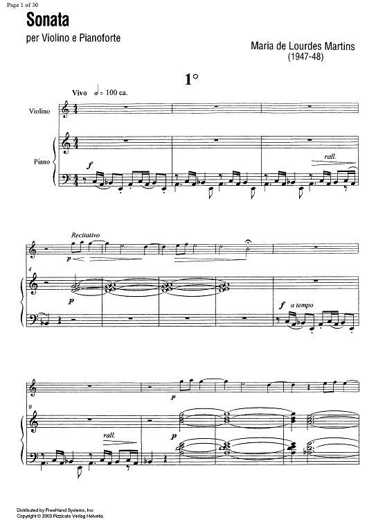 Digital Sheet Music for Sonata - Score by , Maria de Lourdes Martins scored for Violin/Piano; id:351566