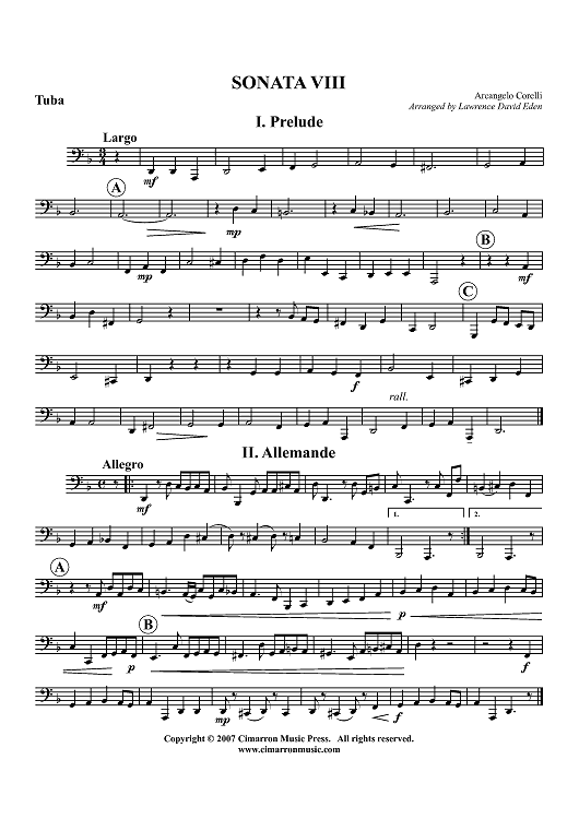 "Sonata VIII - Tuba" Sheet Music by Arcangelo Corelli