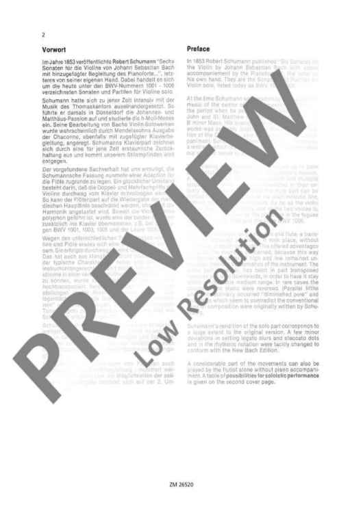 Im Jahre 1853 veröffentlichte Robert Schumann die 6 Sonaten mit Begleitung des Pianoforte, letzteres von seiner eigenen Hand. Schumanns Klavierpart zeichnet sich durch eine für jene Zeit erstaunliche Zurückhhaltung aus und kommt unserem heutigen Stilempfinden sehr entgegen. Der Flötenpart übernimmt die melodische Hauptlinie, ohne dass die Harmonik angetastet werden musste. Die Solostimme wurde um eine Quarte nach oben transponiert.