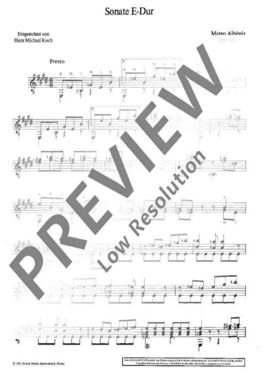 "Sonate E major" Sheet Music by Mateo Albéniz