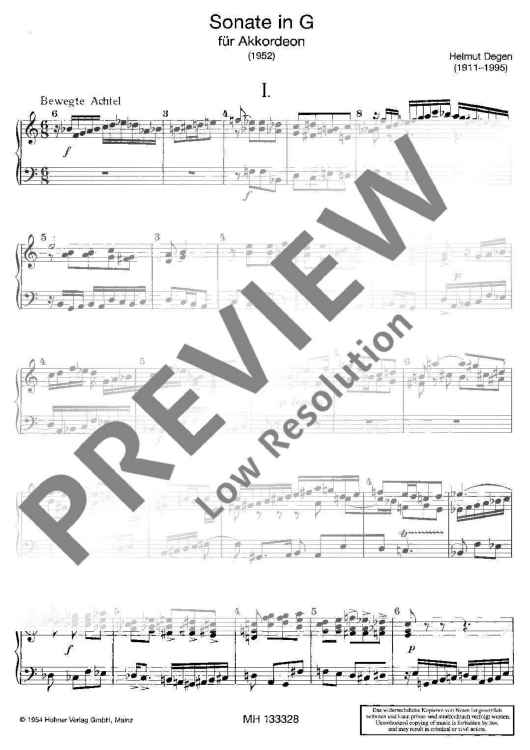 Digital Sheet Music for Sonate in G by Helmut Degen scored for Accordion (m Ii); id:475995