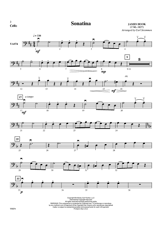 Digital Sheet Music for Sonatiana - Cello by Carl Strommen, James Hook scored for Orchestra; id:408441