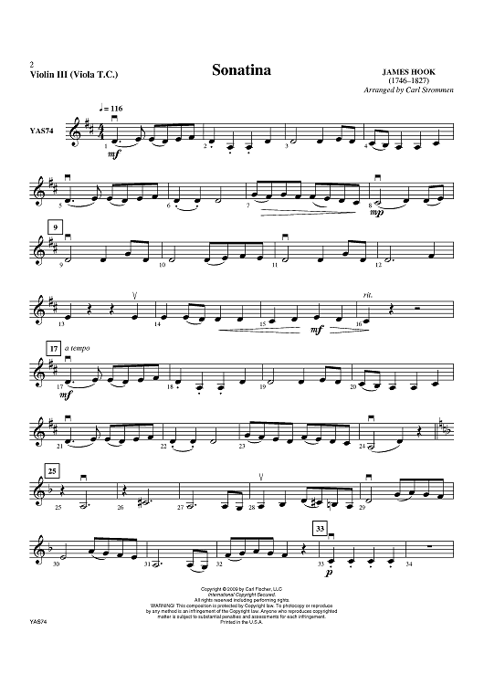 Digital Sheet Music for Sonatiana - Violin 3 by Carl Strommen, James Hook scored for Orchestra; id:408439