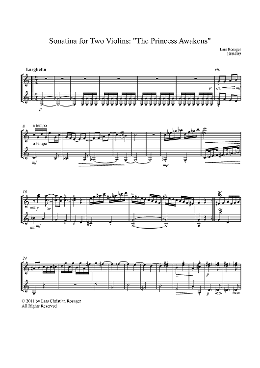 "Sonatina for Two Violins: "The Princess Awakens"" Sheet Music by Lars Rosager