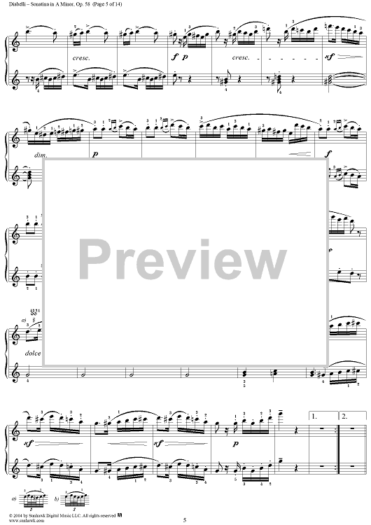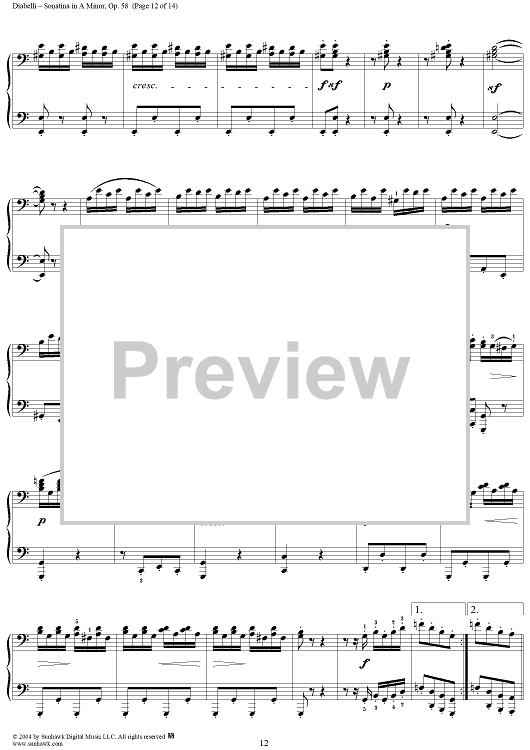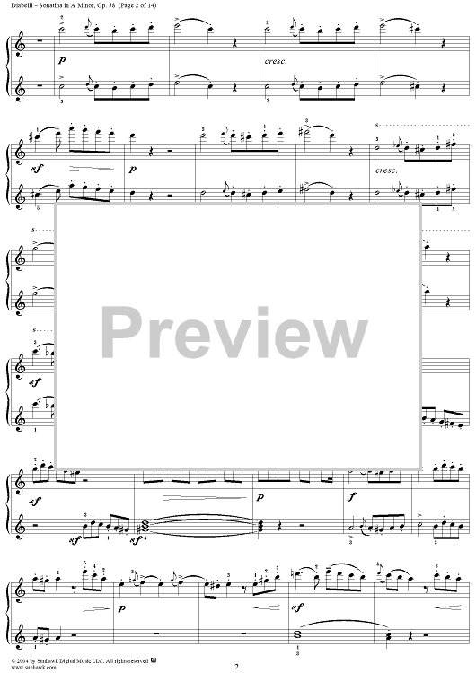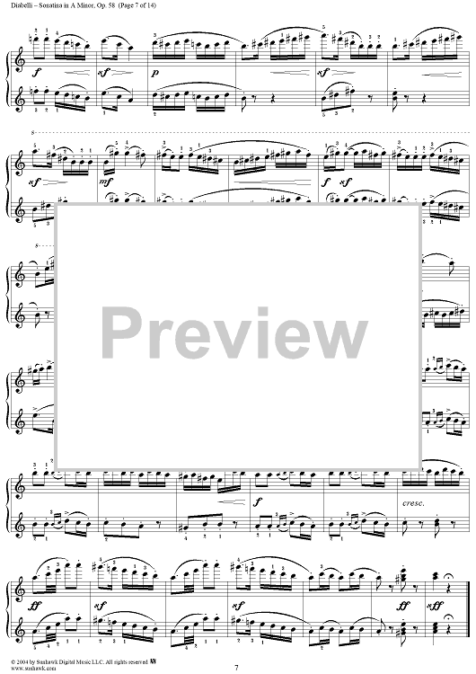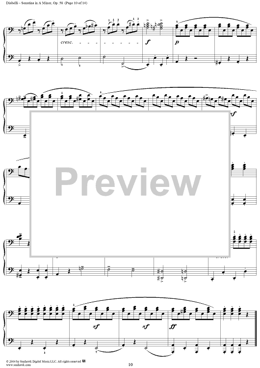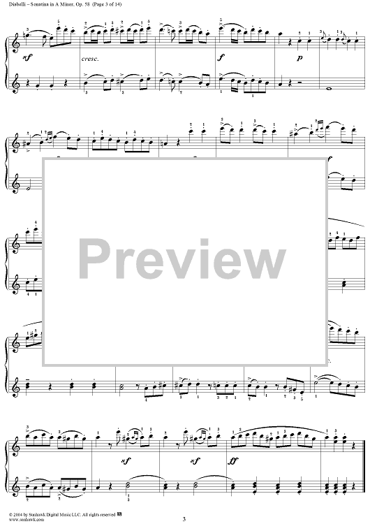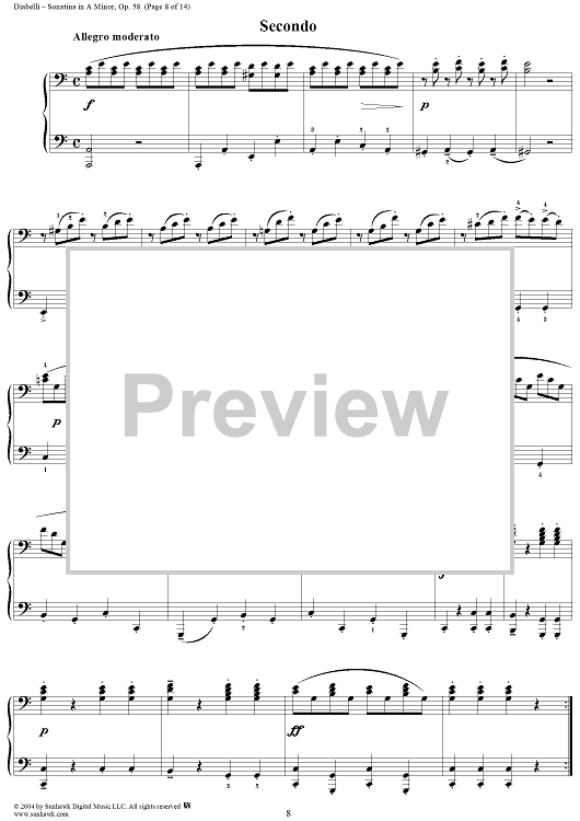 Digital Sheet Music for Sonatina in A Minor, Op. 58 by Anton Diabelli scored for 1 Piano, 4 Hands; id:298064