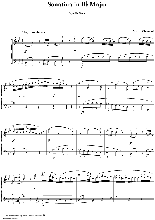 Digital Sheet Music for Sonatina in B-flat major, op. 38, no. 2 by Muzio Clementi scored for Piano Solo; id:118064
