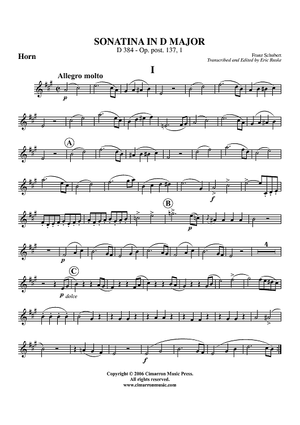 "Sonatina in D Major, D 384 - Op. post. 137, 1 - Horn" Sheet Music by Franz Schubert