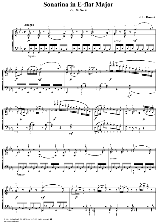 "Sonatina in E-flat Major, Op. 20, No. 6" Sheet Music by Johann Ladislaus Dussek