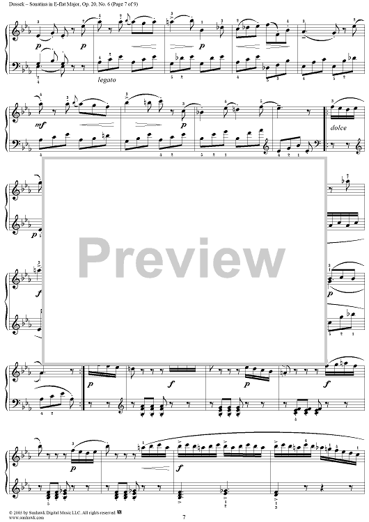 Digital Sheet Music for Sonatina in E-flat Major, Op. 20, No. 6 by Ludwig Klee, Johann Ladislaus Dussek scored for Piano Solo; id:294254