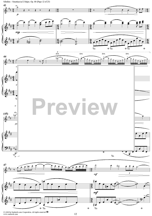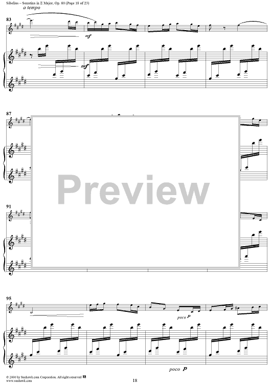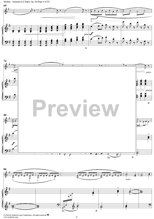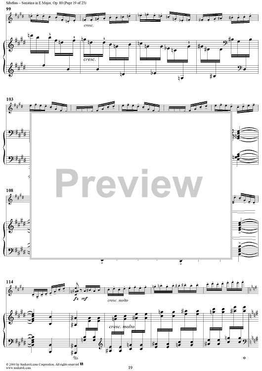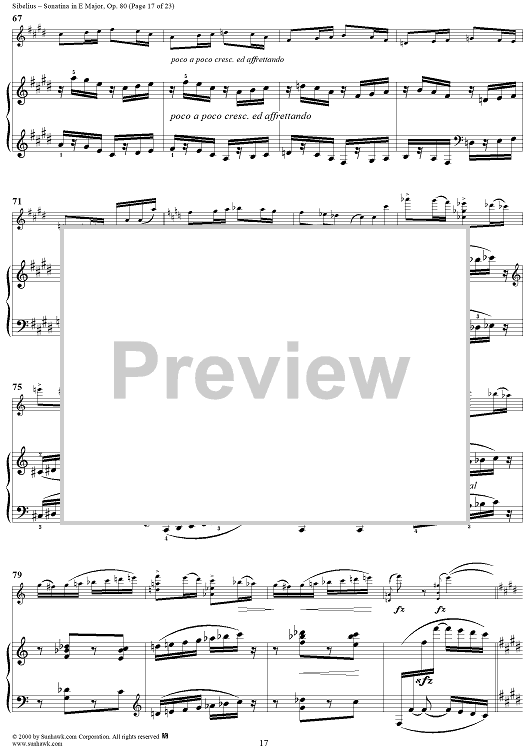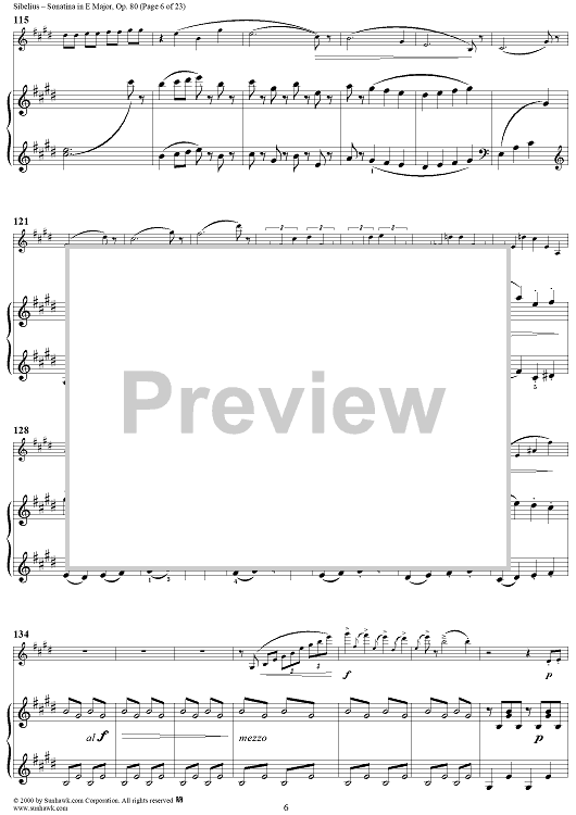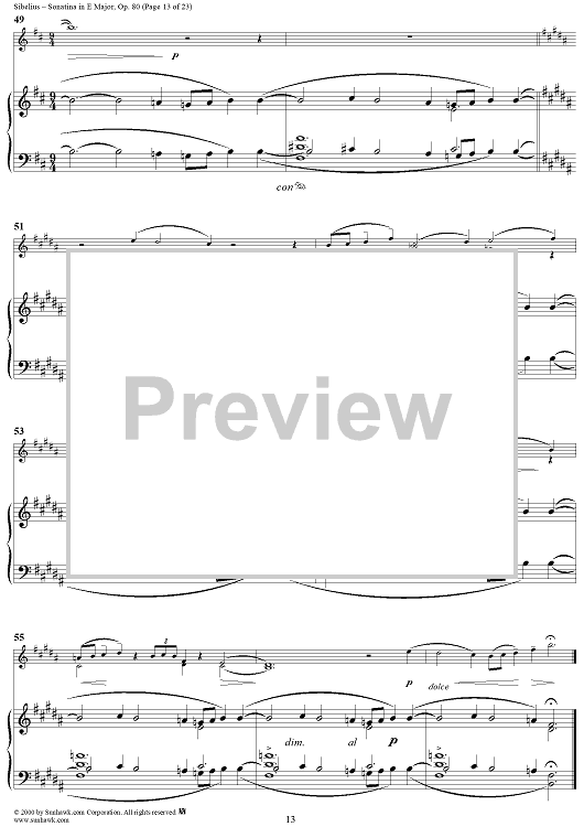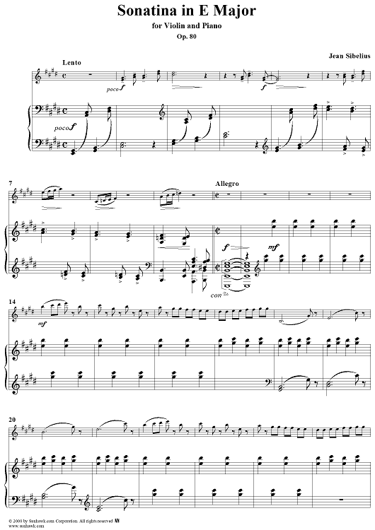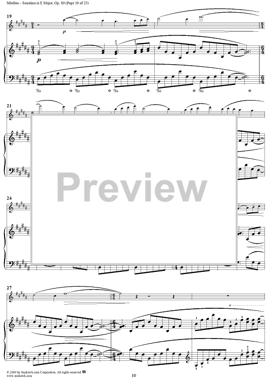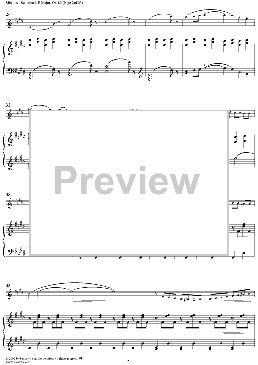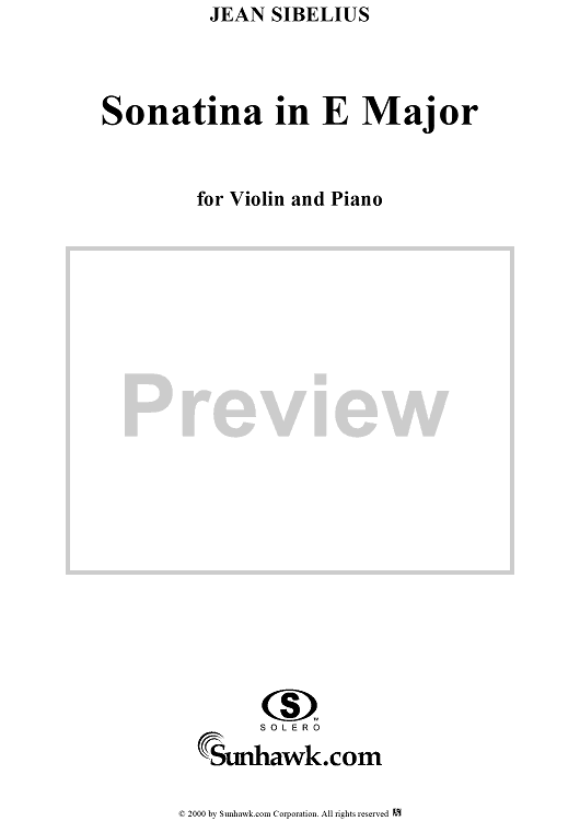 Digital Sheet Music for Sonatina in E Major, Op. 80 - Piano Score by Jean Sibelius scored for Violin/Piano; id:257689
