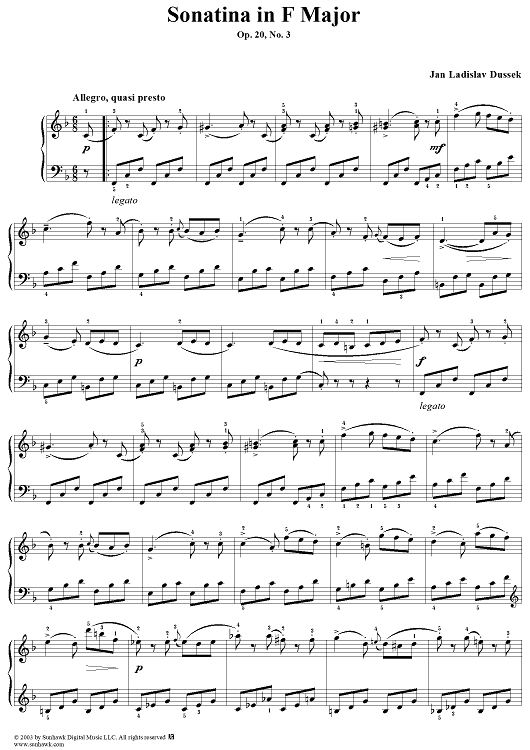 "Sonatina in F Major, Op. 20, No. 3" Sheet Music by Johann Ladislaus Dussek