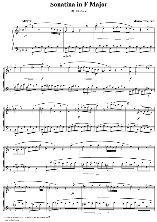 Digital Sheet Music for Sonatina in F major, op. 38, no. 3 by Muzio Clementi scored for Piano Solo; id:118209