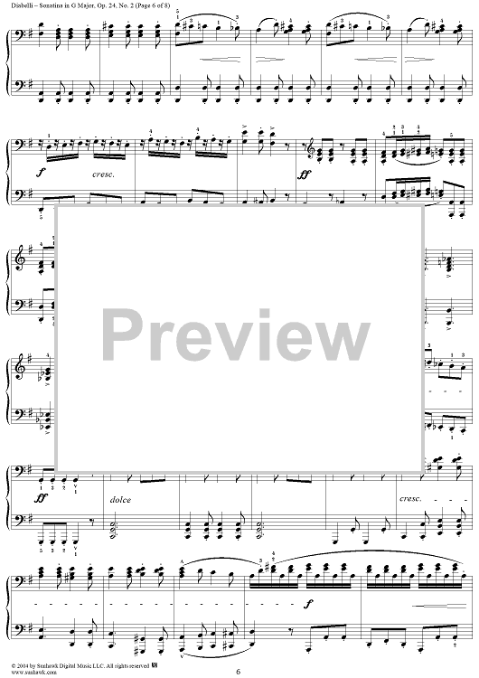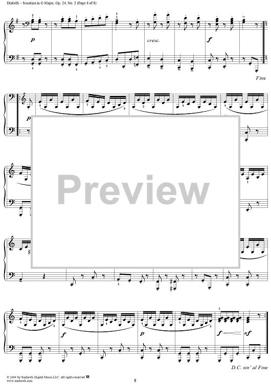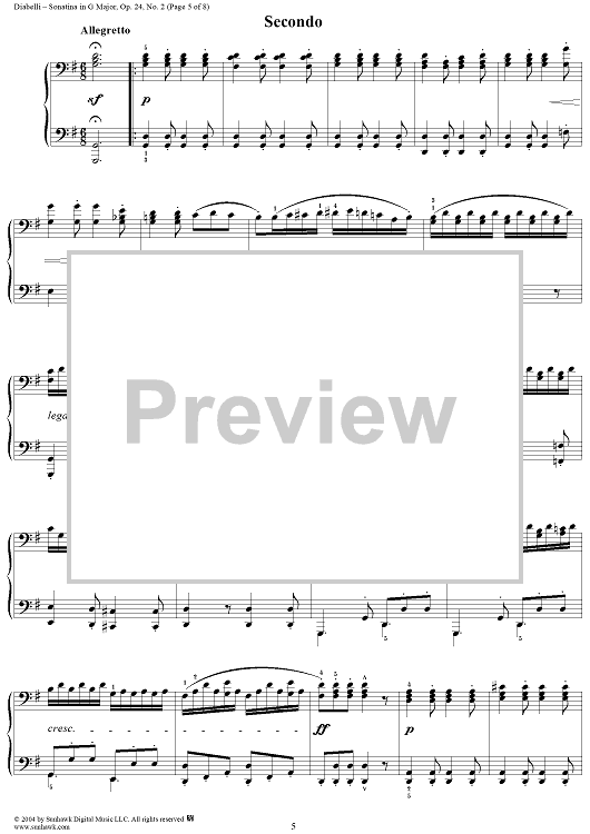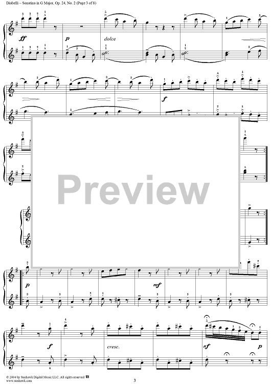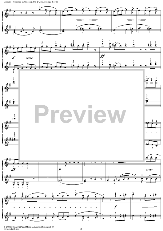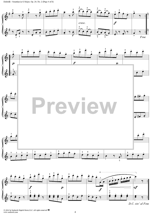 Digital Sheet Music for Sonatina in G Major, Op. 24, No. 2 by Anton Diabelli scored for 1 Piano, 4 Hands; id:298062