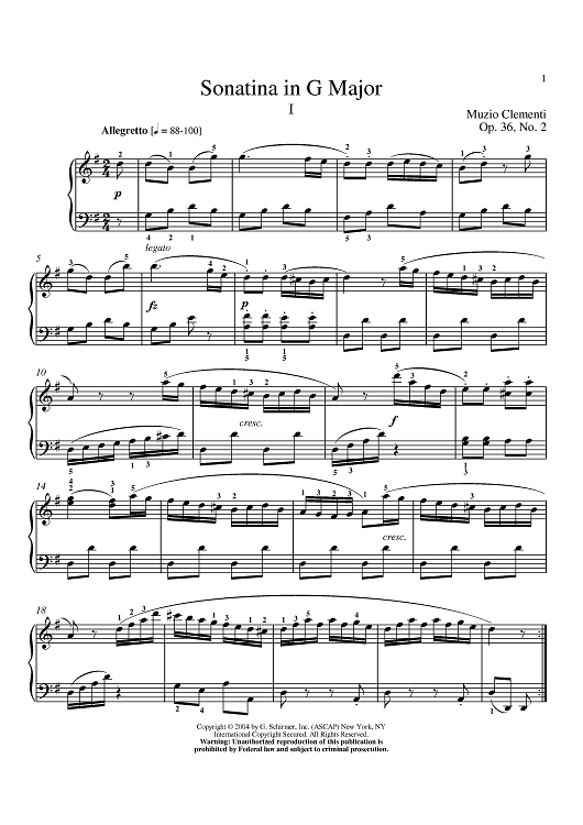 "Sonatina In G Major, Op. 36, No. 2" Sheet Music by Muzio Clementi