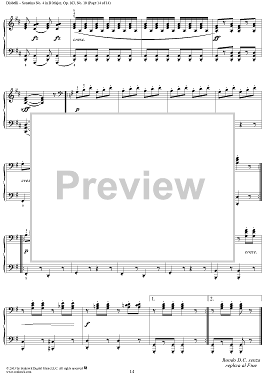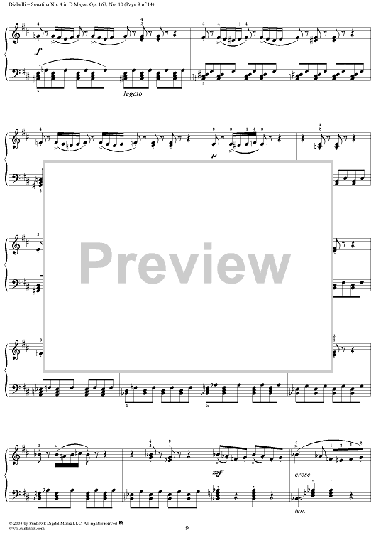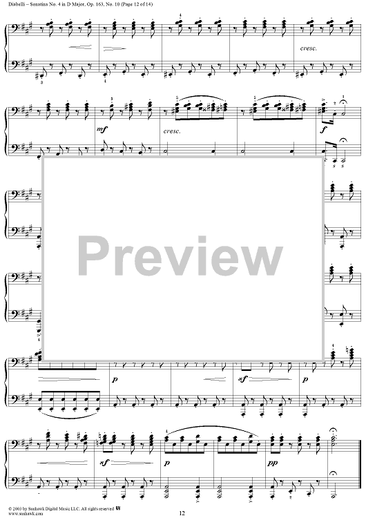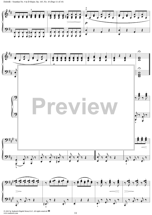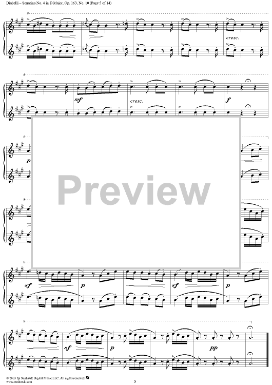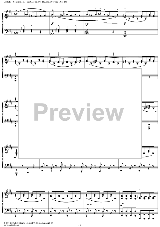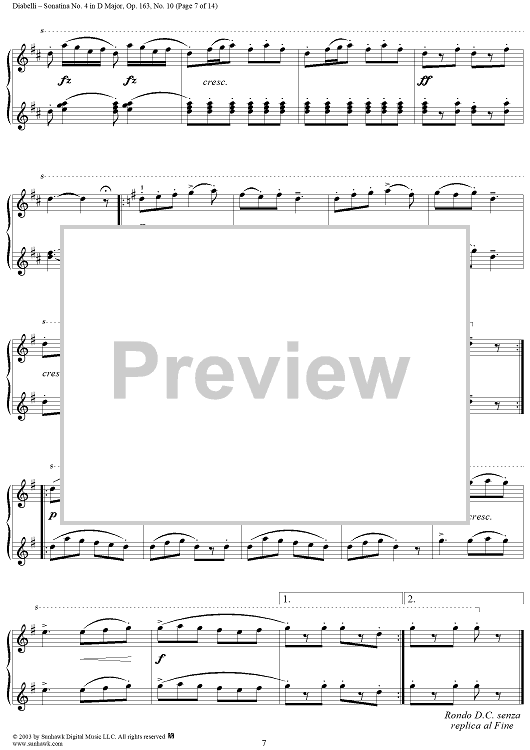 Digital Sheet Music for Sonatina No. 4 in D Major, Op. 163, No. 10 by Anton Diabelli scored for 1 Piano, 4 Hands; id:294788